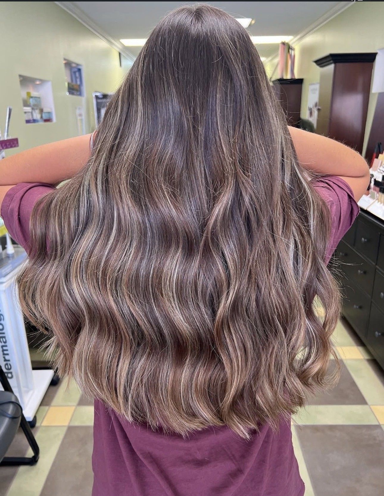 IBE is an advanced, hand-tied weft extension method. It involves anchoring rows of 100% human hair wefts to a foundation of small, silicone-lined beads that are wrapped around the head. The magic of IBE is that the beads are completely hidden